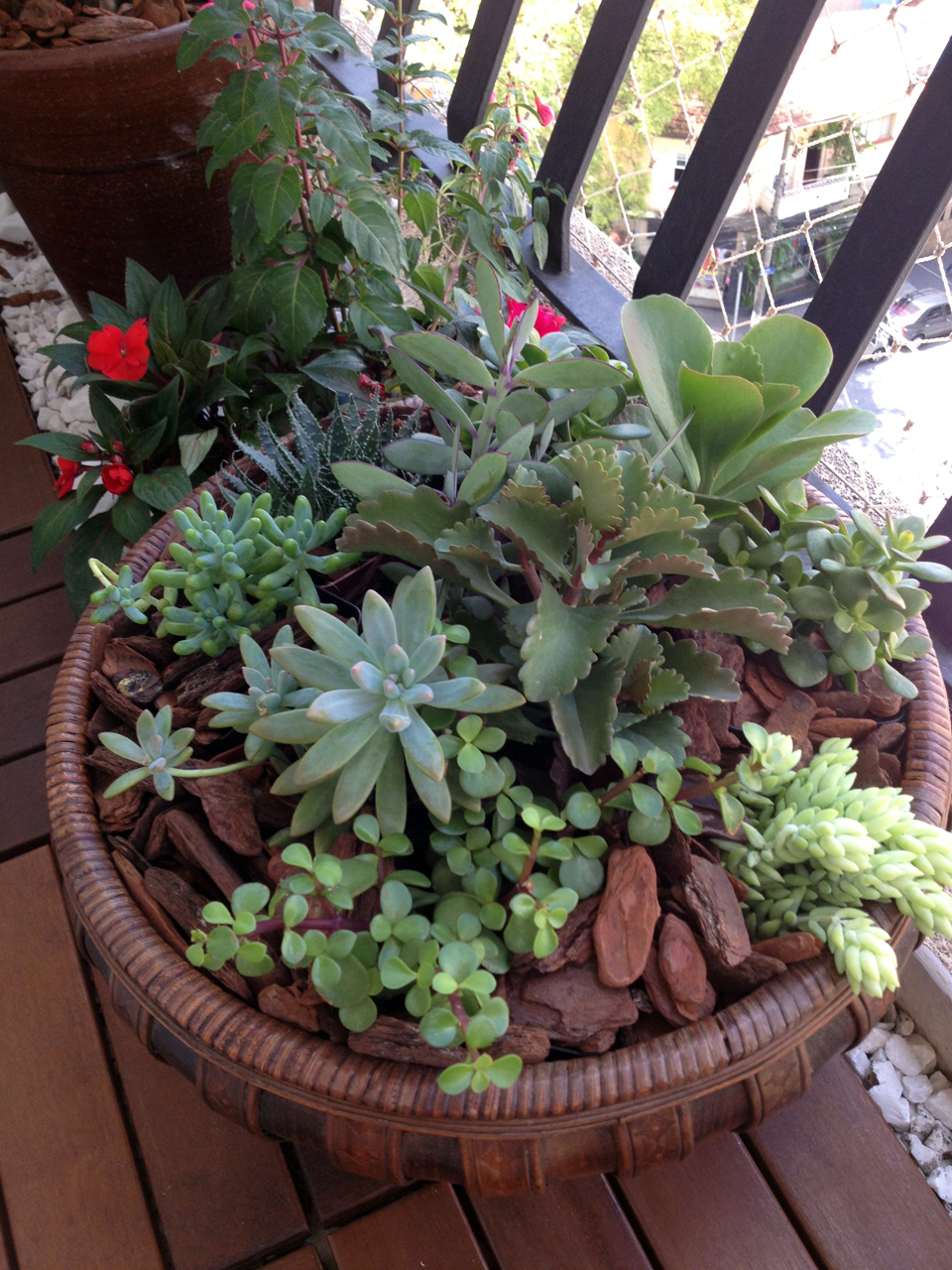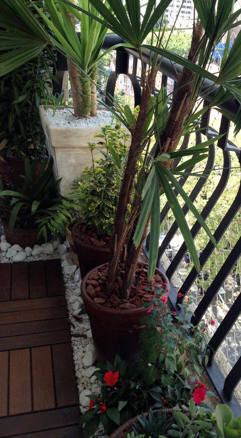 Uma das coisas mais gostosas de morar em casa é poder ter um lindo jardim. Mas há outros motivos que me façam preferir morar em apartamento. Então, fiquei até bem pouco tempo atrás passando vontade de ter um jardim para chamar de meu. Eis que lancei o tema para a minha consultora de decoração e jardinagem (vulgo, minha mãe) e ela começou a buscar referências e mais referências no Google e no Facebook. Com várias ideias na mão, o passo seguinte foi ir ao Shopping Garden procurar as plantas mais bonitas e que fossem de meia-sombra, já que a minha varanda recebe sol de manhã e sombra à tarde. A vendedora sugeriu ráfia, impatiens, brinco de princesa… Uma ida à Rua do Gasômetro resolveu o deck de madeira (as peças só precisam de verniz e encaixam uma na outra). Nossa casa (digo, apartamento), ganhou um jardim para a família começar 2014 com muita beleza (só falta colocar uma iluminação noturna). Quer ver como ficou? Dá uma olhada!