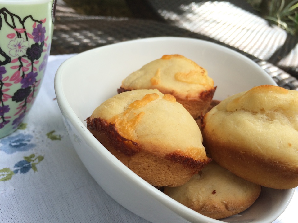 Pré-aqueça o forno a 180 graus. Em uma vasilha misture todos os ingredientes, mexendo até formar uma massa com consistência de purê de mandioquinha (cremoso e um pouco grudento). Unte uma forma com manteiga e farinha e molde bolinhas, distribuindo-as lado a lado, mas com espaço para que cresçam. Leve ao forno por 20 minutos. Retire a forma e passe um pouco de manteiga sobre cada pãozinho e polvilhe-os com o queijo ralado. Leve ao forno novamente por mais dez minutos ou até que estejam dourados. O ideal é consumir no mesmo dia.