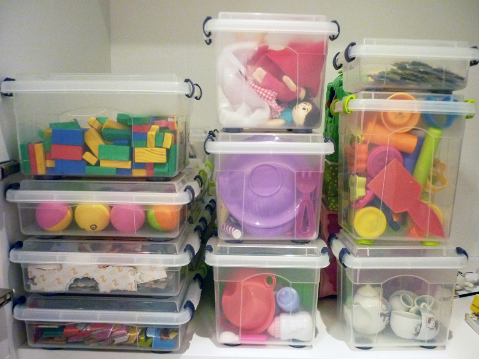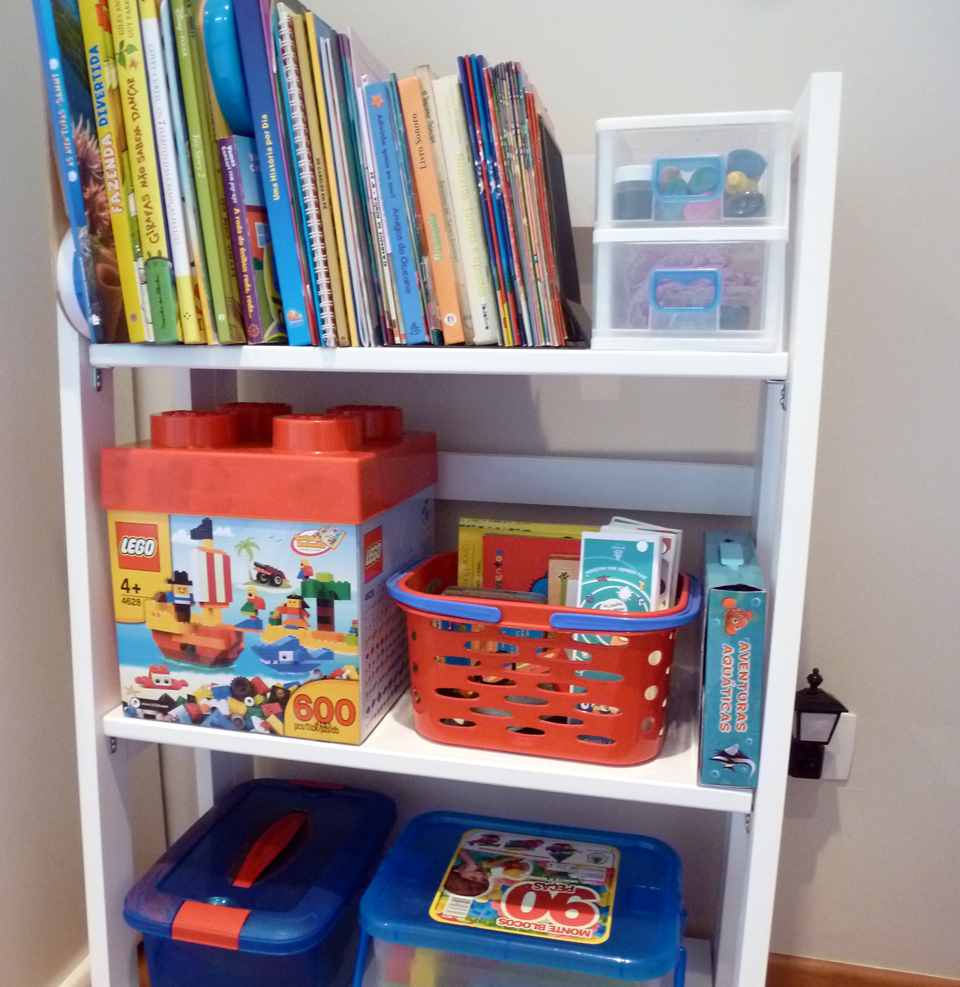 Não é preciso deixar muitos brinquedos neste cantinho. Vá revezando quinzenalmente o material para que seu filho realmente brinque com o que ele tem. E, por favor, descarte hoje mesmo aquelas caixas grandes e fechadas de brinquedos ou o famigerado baú. Eles apenas encaixotam bagunça. Afinal, como a quantidade de brinquedos armazenados é enorme, as crianças brincam apenas com o que fica por cima. Sim, eu sei que quando chegam visitantes você coloca tudo dentro do baú e a sensação de alívio da bagunça é incrível, mas o melhor é mesmo organizar!