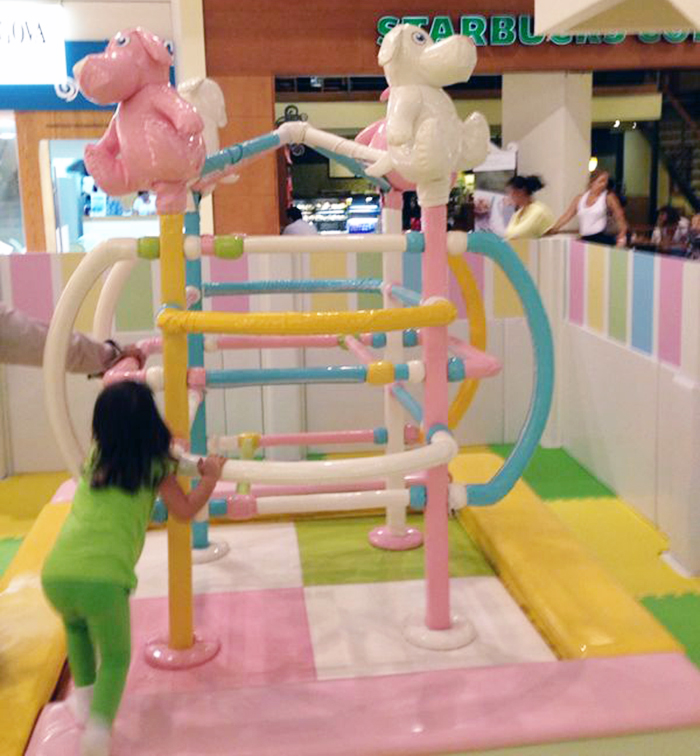 Pois bem. Lá fui eu conhecer esse lugar mágico – um stand temporário no Térreo do Shopping Villa Lobos (eles ficam lá até 9 de março) . E soube, logo, que o conceito ali é que pais e filhos brinquem juntos. Recusei, obrigada, outro dia – muita coisa na minha listinha para resolver até que o shopping feche, em 40 min. Mas a regra é clara: crianças de até 4 anos não podem ficar sozinhas. Diante dos olhos pedintes de minha filha, de 3, cedi e tive que entrar. E, apesar de os brinquedos não estimularem, como prometido, a interação pais e filhos (afinal, são só mesmo para os pequenos, obrigando os pais a ficarem observando a diversão ou, no máximo, assessorando o sobe e desce dos equipamentos), ver a folia alheia já é gostoso. Ainda mais quando você é doido de amor pela pessoinha que se joga, e corre, e dá risinhos pelo parquinho. E esqueci das tarefas, de mim, para apreciar aquele momento. Ah, as mães…..