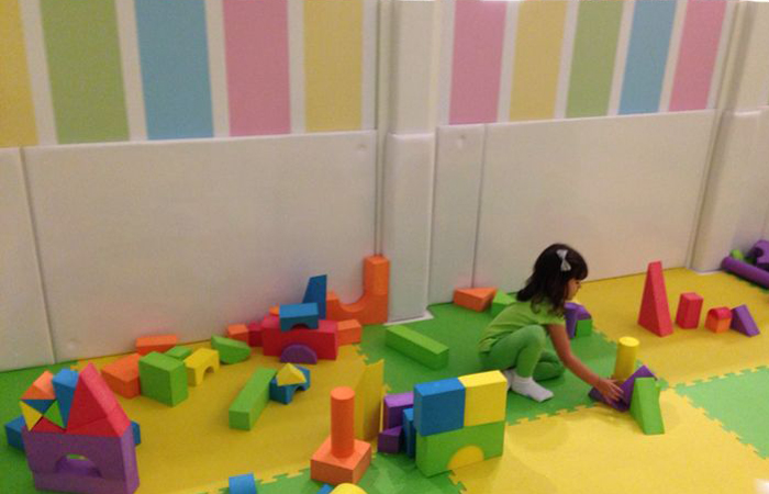 Ir ao shopping, por exemplo, é um clássico de cenas constrangedoras e a experiência pode ser um programa estressante para os dois lados. Em uma dessas vezes de ida às compras, eis que se desenha, à minha frente, uma ideia ge-ni-al. “Como ninguém pensou nisso antes?”, me perguntei. Pois alguém pensou. E criou um espaço para crianças de oito meses a seis anos (ou 1,30m de altura) brincarem, de maneira segura com brinquedos bem diferentões dos convencionais. E, o melhor, é que o espaço é TODO ACOLCHOADO – isso inclui paredes, piso, bordas e quinas de brinquedos –, coberto por materiais atóxicos. (Mães superprotetoras, o paraíso é aqui!) Compondo essa fofice, claro, tons pastéis, ao contrário daquela profusão de cores chamativas e pouco harmoniosas de parquinhos tradicionais. No Diverbras Kids é tudo lilás, rosinha, verde, amarelinho….very candy colors! Parece bobagem, mas cria um cenário delicado, infantil e bem convidativo.