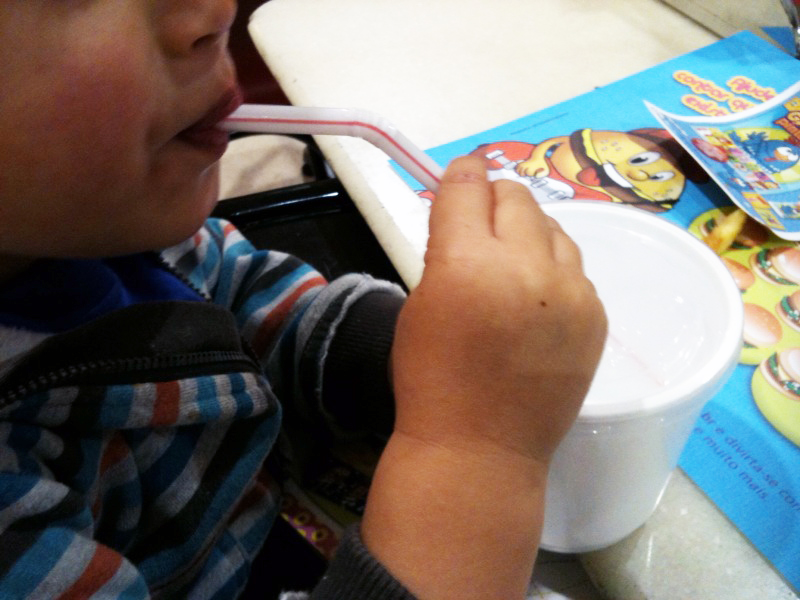 – Adorei o copinho para crianças.Um modelo de plástico com tampa e furo para canudo (tipo do Starbucks, sabe?). Um bom anti-derramamento de líquidos e anti-acidentes (desde que seu filho não seja curioso e não tente enfiar o dedo no buraquinho do canudo – o meu fez isso e, pra tirar o dedo gordinho dali, foi um sufoco)