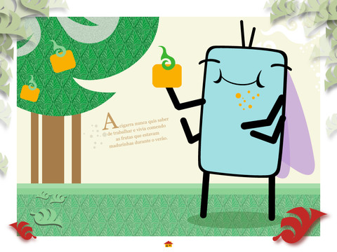 O A Cigarra e a Formiga é para crianças bem novinhas e para ser lido pelos pais. Apesar de ser uma história clássica, vale pelas ilustrações e principalmente pela sonoplastia, que é uma graça. É uma produção brasileira. Custa 1,99 dólares.