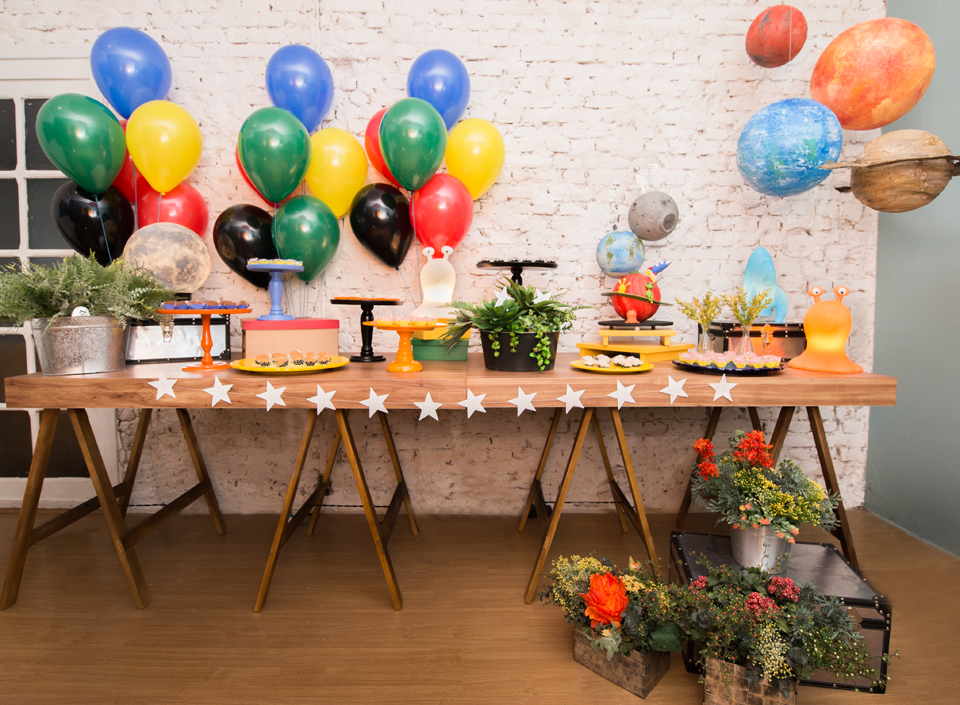 Festa do espaço: sistema solar e extraterrestres simpáticos no aniversário