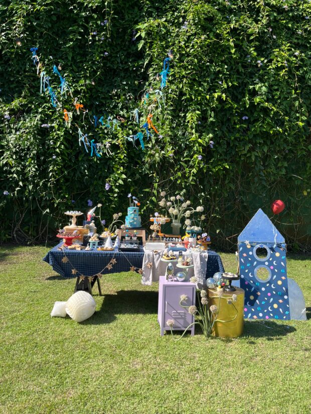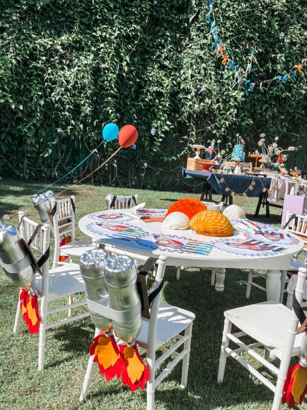 O tema astronauta e espaço sideral costuma ser um dos mais amados entre as crianças. E esta festa ao ar livre com o tema foguete tem uma inspiração encantadora.