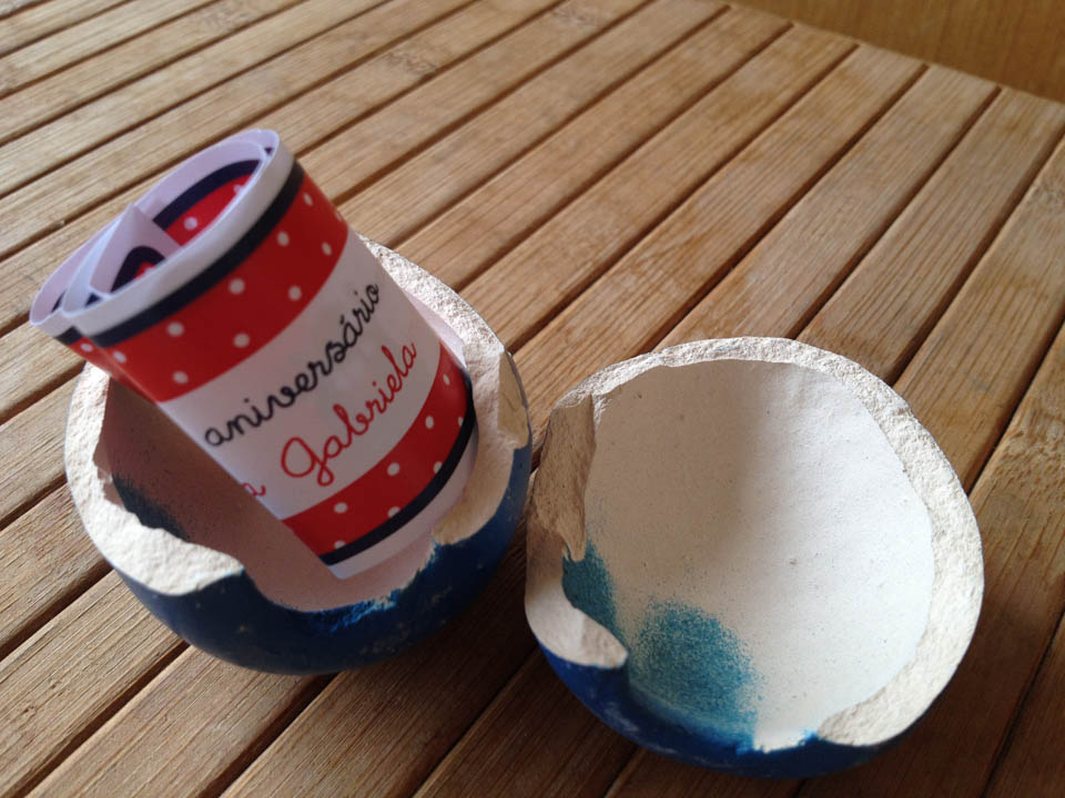 Tenho uma super amiga que sempre faz festas originais e lindas. E não poderia ser diferente no aniversário de 1 ano da filha dela, a Gabi. A decoração vai ser da Galinha Pintadinha – personagem preferida de 11 entre dez bebês hoje! A começar pelo convite, que chegou em casa dentro de um ovo de gesso azul com pintinhas brancas, já deu para perceber que tudo vai ser muito criativo. Meus filhos adoraram a brincadeira de quebrar o ovo para ver o convite (que diversão para eles poder quebrar algo com o total aval da mãe, sem tomar bronca!!). Dá uma olhada nas fotos e inspire-se.