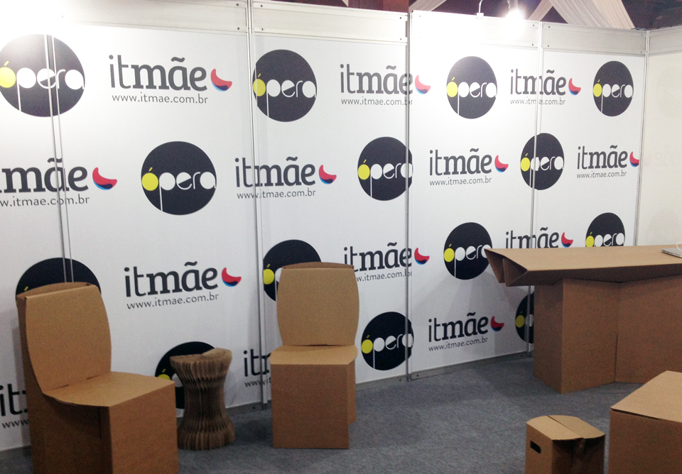 Instlamos no QG na feira (da uma olha na foto do espaço quaaase pronto na foto aí embaixo). Tá super moderno com os móveis inteligentes de papelão da 100t (muito legais e sustentáveis). Vamos fazer posts falando das tendências de moda infantil, mostrar as marcas mais bacanas para adultos que agora têm versões para as crianças (sim, tem novidade!), as melhores ideias e produtos de decoração. Você também vai poder assistir a trechos dos desfiles das grifes Bicho Brasil, VIC, Pijama Divertido, VR KIds, Pop Up Cute, Balangandã, Kids Place, Bébé Sucré e Mandi. Os vídeos serão produzidos pela Publivideo! Chique né? Tudo vai passar na tevê It Mãe, que fica na home do site, e também no nosso canal no You Tube. Toda a cobertura estará também em nossas redes sociais: Facebook, Instagram e Twitter!