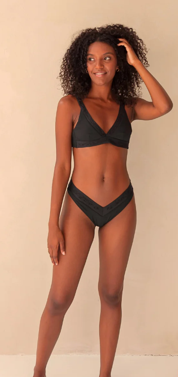 Se essa é a sua intenção, modelagens com cava mais alta, calcinha em formato de V e continuidade de cor ajudam o olhar a percorrer o corpo de forma vertical.