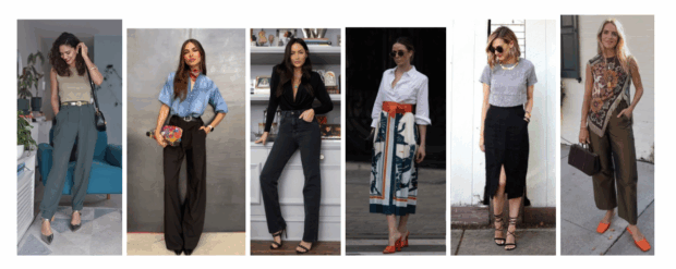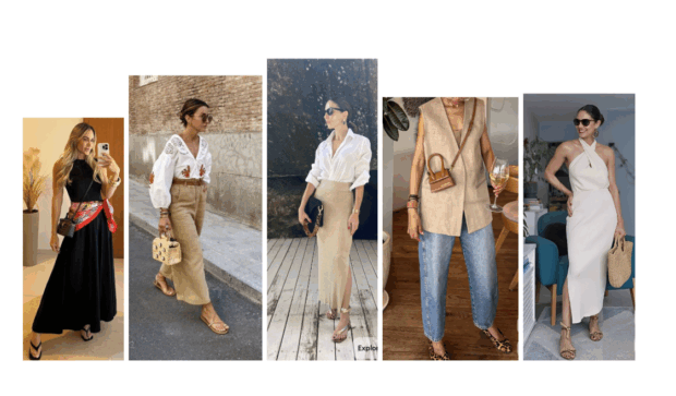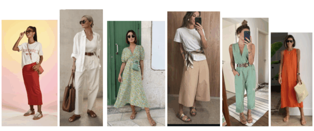 Prefira: tecidos respiráveis (linho, viscose, algodão), caimentos confortáveis e produções que comuniquem naturalidade com intenção.