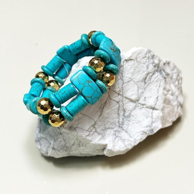 - A energia vibrante da turquesa com dourado, perfeita para dar cor aos dias cheios de compromissos.