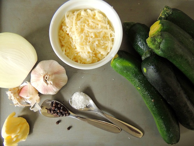 Para preparar o creme de zucchini gratinado você vai precisar de abobrinha, alho, cebola, sal, pimenta, manteiga, queijo parmesão (foto: Monique dos Anjos)