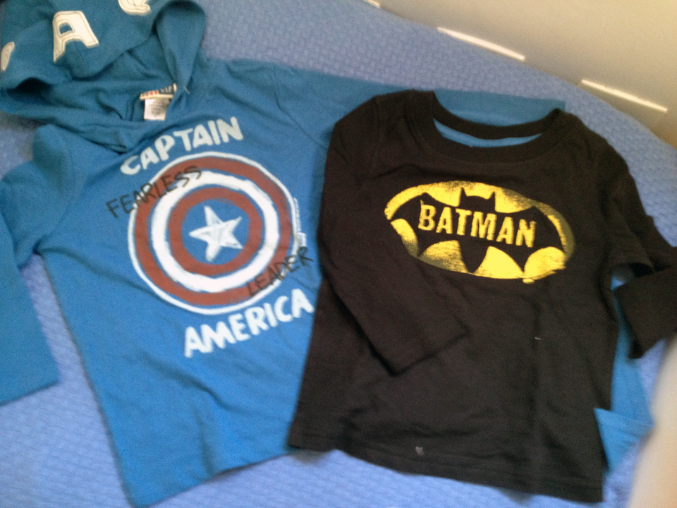 Camisetas da Gap Baby. A do Capitão América tem gorro e a do Batman vem com uma capa de malha com velcro (foto: Dani Folloni)