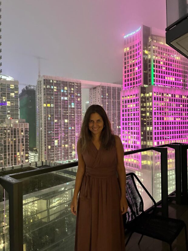 E a vista? Nossa varanda dava para o skyline vibrante da Brickell, com seus arranha-céus de arquitetura moderna (de noite, a iluminação colorida deixava tudo mais mais mágico) criando um pano de fundo perfeito para o entardecer — um verdadeiro cartão-postal urbano.