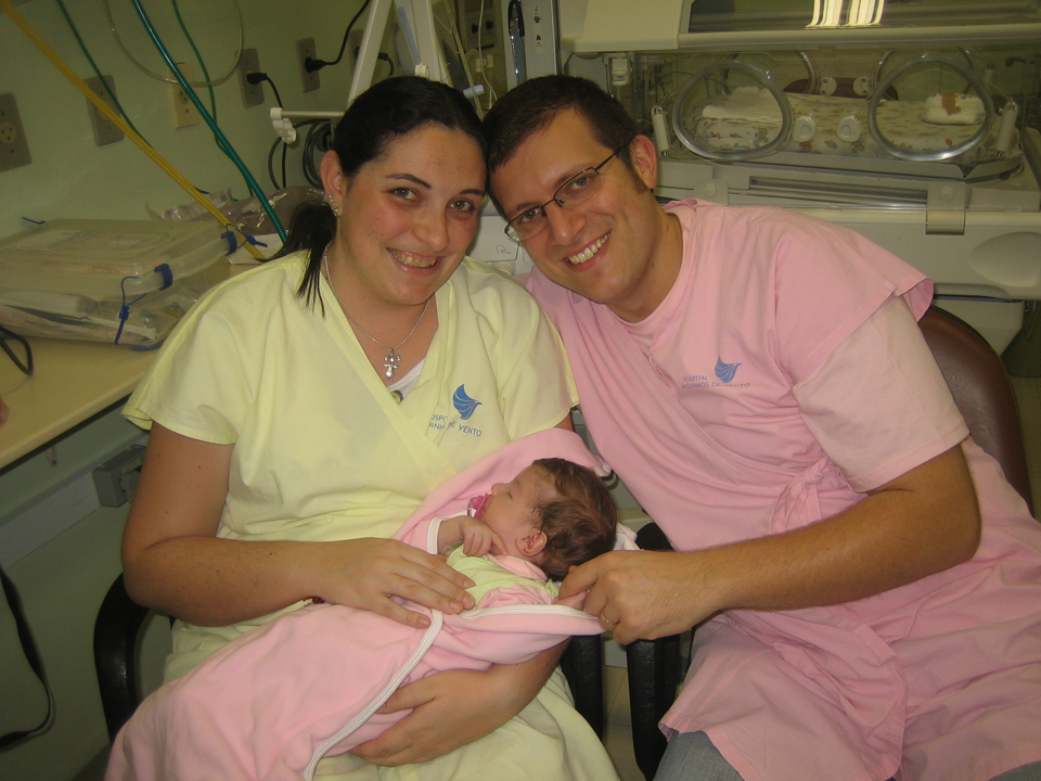 No dia 21 de setembro as 6:30 da manhã minha bolsa rompeu… Por sorte conseguimos uma ambulância da prefeitura que passou nos pegar as 7:30 e seguimos para Porto Alegre… Chegamos ao Hospital Moinhos de Vento e a tensão começou a tomar conta… Na hora do parto tive um bloqueio nervoso, a anestesia não pegou e tive que ser sedada… Não a vi nascer, não a escutei chorar…