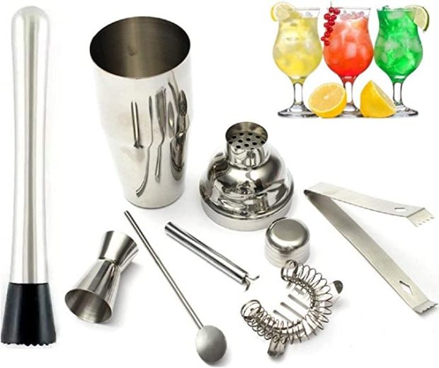 Compre aqui: Kit de bar com coqueteleira e socador (R$ 92,40):
