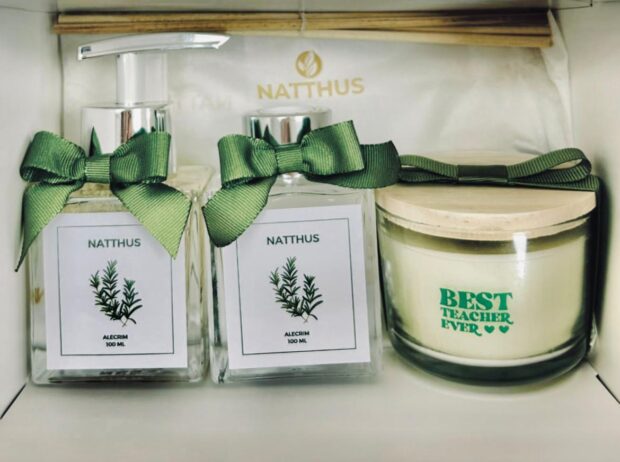 E que tal aromas para casa? O Trio Super Fresh vem com sabonete líquido, difusor de ambientes e vela perfumada Best Teacher Ever, R$276,Natthus (foto: divulgação)