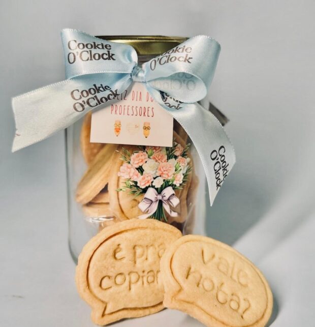 Um pote de cookies com frases divertidas é um sucesso. Da Cookie O’Clock. (foto: divulgação)