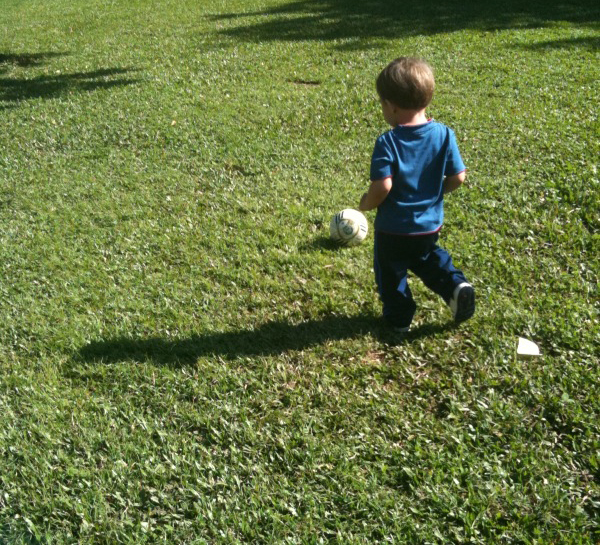 Um sábado desses, minha filhota estava dormindo na casa da tia, meu marido precisando ler e-mails de trabalho e fiquei eu e o Fe, de quase 2 anos, brincando na sala. Ele adooora uma bola. Ou melhor, ama uma bola. Quando vê um jogo – de futebol, de vôlei, de tênis – já sai gritando Gooooool. E tudo o que é redondo ele quer chutar. De laranja da cesta de frutas a luminária de rua. De uns tempos para cá, aprendeu a chutar seu brinquedo favorito para cima. E era exatamente o que ele estava fazendo. Vendo a chance real de algum vaso ser seriamente atingido, decidi continuarmos a brincadeira no parque.